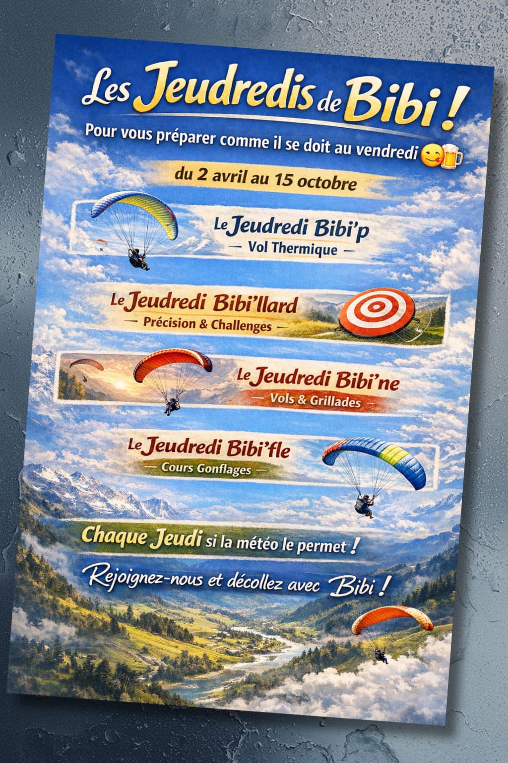 Tu souhaites apprendre à voler et devenir pilote? Tu es à la bonne place. Chez nous tu trouveras tout ce qu’il te faut: un encadrement et une formation personnalisée, du matériel adapté à tes envies, des sites de vols, des sorties, des voyages… On vole tous les jours volables, 7/7 et toute l’année !